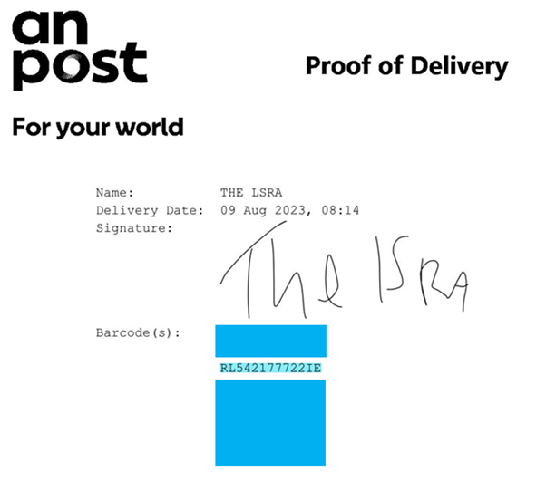 • Legal Services Regulatory Authority – received on 9th August 2023 at 08:14 (see page 19) and to